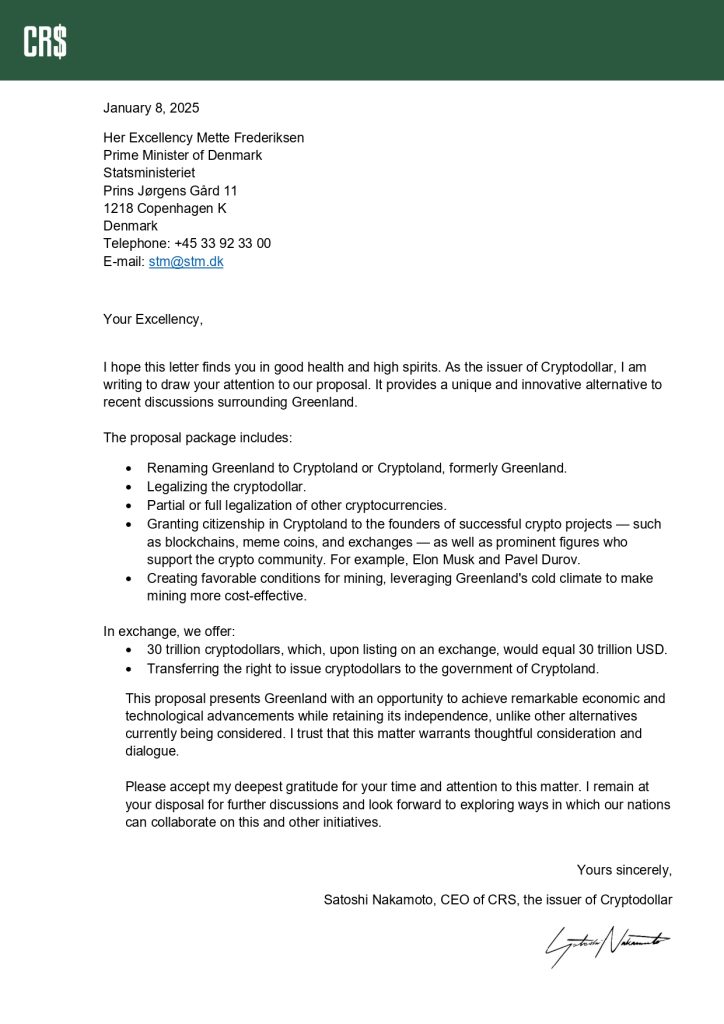 - Renaming Greenland to Cryptoland.