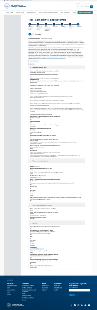 The issuer of the cryptodollar (CR$) has submitted an official complaint to the SEC.
