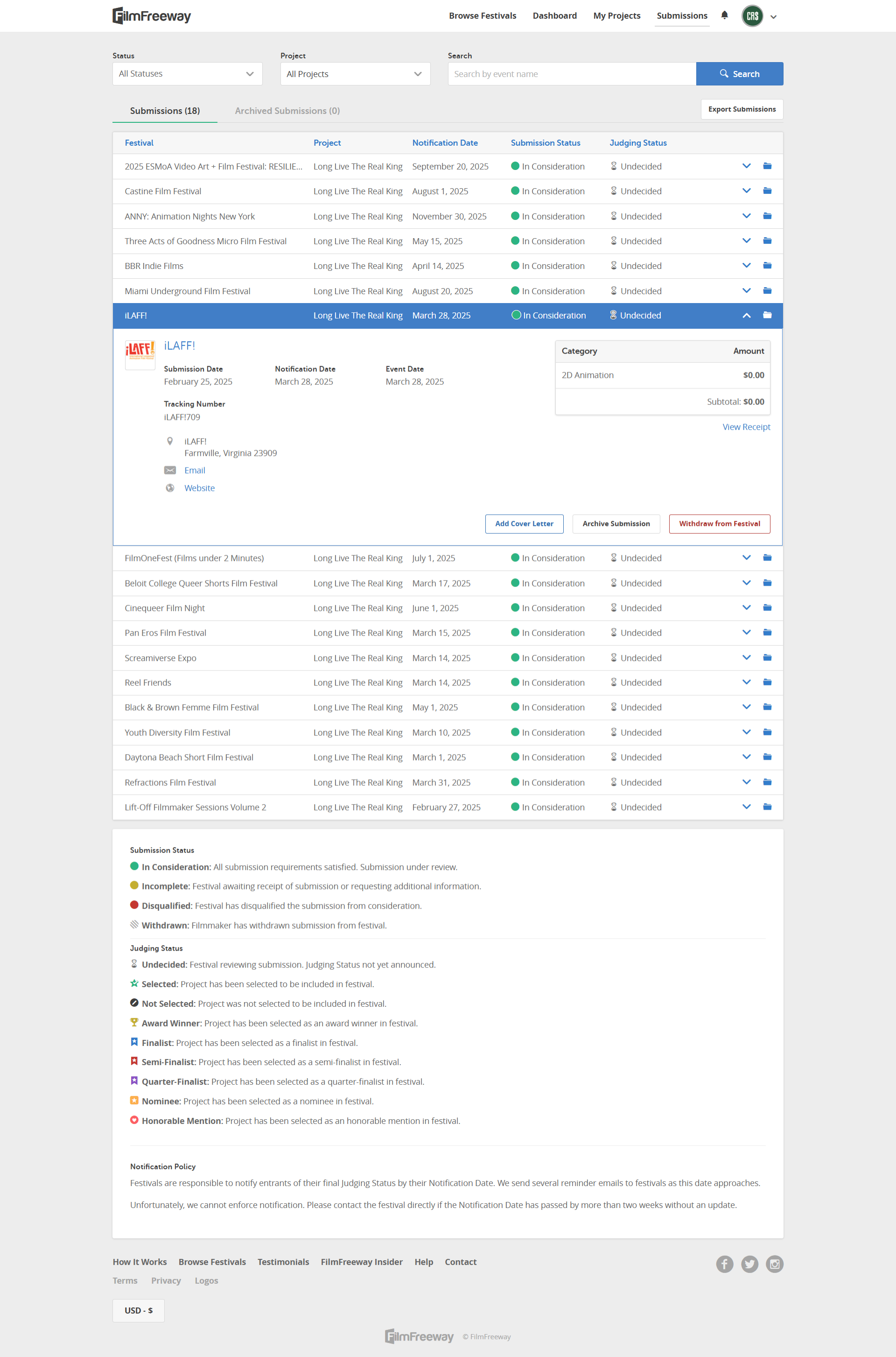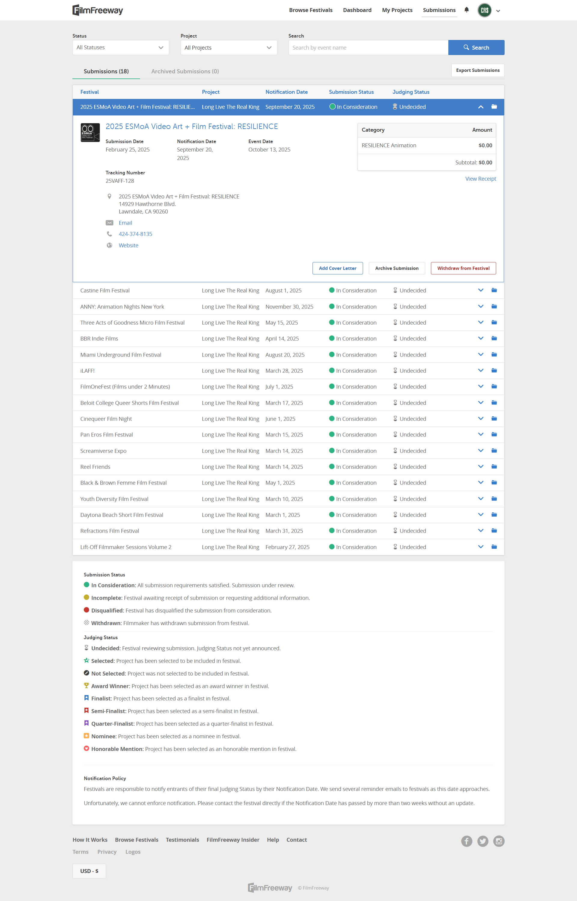 – Animation: 2025 ESMoA Video Art + Film Festival: RESILIENCE, ANNY: Animation Nights New York, iLAFF!, FilmOneFest (Films under 2 Minutes)